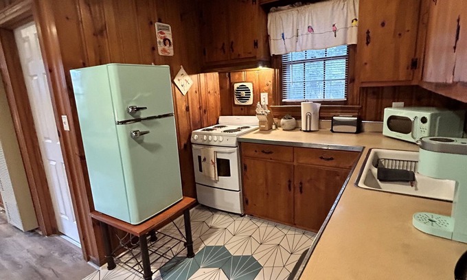 This 1950's throwback cottage is located on the same property as a mid term rental w/ guests renting anywhere from 1-6 months. It's a completely separate home with it's own entrance, courtyard, & dedicated parking space in the driveway. It's 800 sq ft w/ a large room divider separating the bedroom from living area. There's a delightfully comfortable Novilla feathertop mattress on the Queen bed & cozy blankets. There are touch lamps on both sides of the bed w/ a USB port to charge your device. The bathroom has a small shower that a person of up to 6'2 can comfortably use (I tested it with my 6' son!) There's ample counter space in the bathroom and 2 people can be in there at once if necessary. The living room has a super comfy leather love sofa and a small dining table with 2 benches. There's also a desk space built into the room divider. The kitchen is fully equipped with all you would need to create a home cooked meal! Washer & dryer is outside the unit right across the front steps. ***This is a family friendly neighborhood and my neighbors' well being is VERY IMPORTANT TO ME! Please be respectful of this and honor the quiet time of 10pm-6am. Absolutely no smoking or pets anywhere on the property. A fine will be assessed if this occurs.***