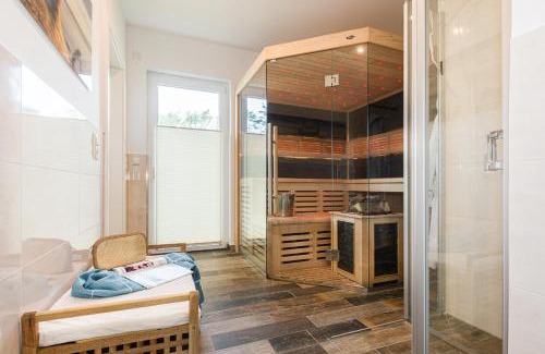 Neu!!! Ferienhaus-See-Sauna-Kamin-5 Sterne-102m² offers accommodations in Krakow am See, 24 miles from Fleesensee and 25 miles from Buergersaal Waren. A sauna and a bicycle rental service are available for guests. There's a children's playground and guests can use free Wifi and free private parking. Offering a terrace with lake views, this vacation home also features a satellite flat-screen TV, a well-equipped kitchen with a dishwasher, an oven, and a toaster, as well as 2 bathrooms with a walk-in shower and a hair dryer. This vacation home is allergy-free and non-smoking. There is a garden with a barbecue at this property, and guests can go cycling and hiking nearby. Rostock-Laage Airport is 25 miles from the property.