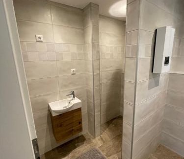 A recently renovated apartment, Neuer Bungalow in Motzen bei Berlin nur 300 m vom See und Strandbad entfernt offers accommodation in Mittenwalde. This property offers access to a terrace and free private parking. When staying at the apartment, guests can use private entrance. The units come with tiled floors and feature a fully equipped kitchenette with a microwave, a flat-screen TV with satellite channels, and a private bathroom with walk-in shower. A toaster, a fridge, and stovetop are also provided, as well as a coffee machine and a kettle. The rooms are equipped with heating facilities. Guests can relax in the garden at the property. Tropical Islands is 25 miles from Neuer Bungalow in Motzen bei Berlin nur 300 m vom See und Strandbad entfernt, while East Side Gallery is 25 miles away. Berlin Brandenburg Willy Brandt Airport is 11 miles from the property.