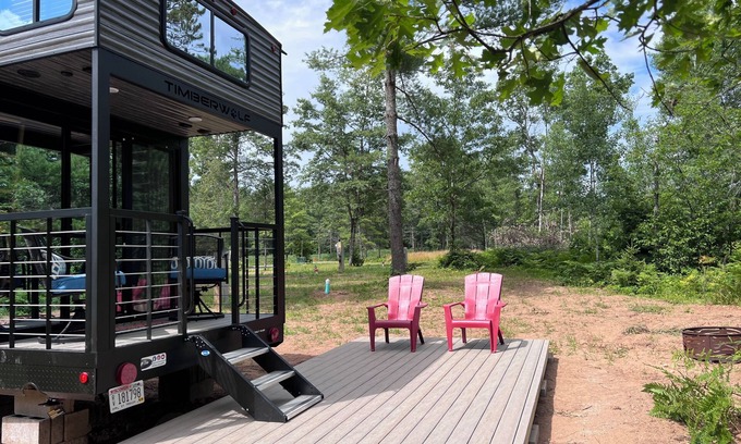This Brilliant & New 2024 Timberwolf 20OG Destination Trailer by Forest River is in Boulder Junction, next to Wisconsin DNR land and on the Vilas County 52 mile bike trail. Offering a cozy retreat with 2 queen bedrooms, and a charming living room with an extra twin bed in the mini-loft. Guests can enjoy the convenience of heating, AC, a washing machine, and WiFi during their stay. The bathroom features a refreshing shower for a marvelous start to your day. Whether you're looking to relax or explore the area, this welcoming property is the perfect choice for your getaway. We look forward to hosting you.