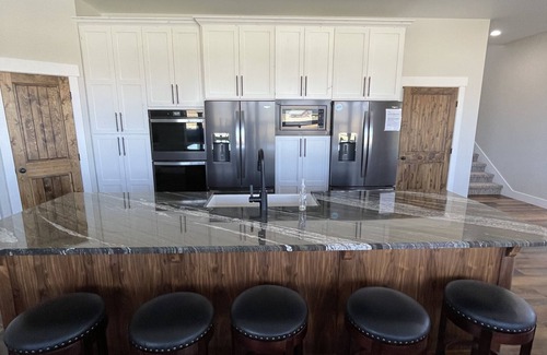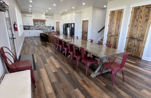 Welcome to the New~3 Master Suites~Near Yellowstone~Waterfront Community~AC~Hot tub~Wifi, an exquisite luxury cabin perfect for your dream wedding. Nestled in the gated Centennial Shores community, this property provides a stunning backdrop with breathtaking views from every room, creating a romantic atmosphere that you and your guests will cherish forever. With ample space to accommodate up to 42 guests, it's ideal for hosting not just your ceremony, but also pre-wedding celebrations and family gatherings.