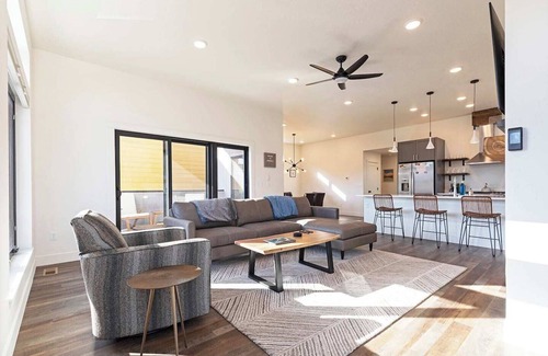 The Trailhead is located in Missoula's newest micro-neighborhood and constructed by a local, award winning builder. This modern, 3 story home boasts high-end finishes throughout. From the heat tile floors and custom showers to the comfy beds and high-end kitchen, this space has something for everyone in your group. The third floor features an incredible office space for remote working with a surrounding views of Missoula and the outdoor patio.