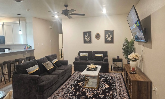 Bring the whole family and unwind at NAKO RETREAT, a brand-new modern townhome designed for comfort, style, and convenience. Located in the highly desirable Lincoln 16 subdivision in Northwest Lubbock, this spacious retreat is perfect for relaxation, family gatherings, and long or short stays.