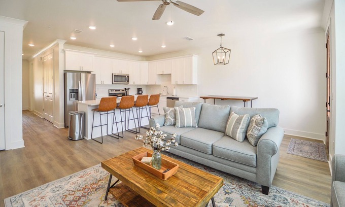 Looking for the perfect place to enjoy your next trip to Starkville? Then look no further! This newly built condominium is not only spacious and modern, but also conveniently located 1.2 miles from MSU’s campus, 1.9 miles from the Cotton District, 2.2 miles from Cornerstone Park, and 1.7 miles from Downtown making it the perfect rental for any occasion that brings you to town. This 3 bedroom/3.5 bedroom unit provides ample space to accommodate 8+ guest comfortably with king size beds in each room along with a queen sleeper sofa in the loft area. Each bedroom is designed as a primary bedroom with an attaching bathroom. Planning an extended stay? This unit is fully equipped with essential cookware and kitchen utensils, washer and dryer, outdoor patio, and private parking located just steps from your front door. It doesn’t get better than this! We believe all roads lead back to Starkville…. or at least we love when they do!