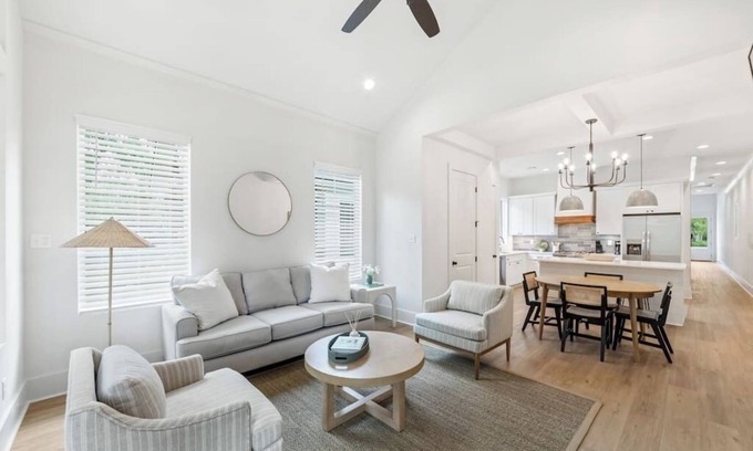 New adorable 3 Bed/2.5 bath cottage built in 2023 in a peaceful subdivision near Moncus Park, Ochsner Laf General Hospital, Oil Center, UL's campus, and Girard Park. You'll enjoy this excellent floor plan designed by Azalea Design Studio and complete with designer-selected new furniture and fixtures. The master suite located on the first floor features a king bed, a walk-in closet, smart tv, and a separate shower and tub.