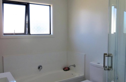 Heat pump / air-con, double glazing, deck with ocean views, and big backyard. Kitchen has a dishwasher, lounge has dining table, comfy couches, and large flat screen TV with Netflix, Neon and Disney plus.