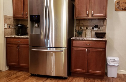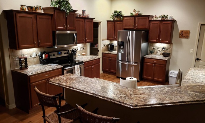 Beautifully 4 bedroom furnished and well maintained home centrally located to Downtown Grand Junction, Palisade and Colorado Mesa University. This home awaits you and your guests with a home away from home experience. It has a spacious kitchen and living room, great for entertaining. 65 inch television with FUBO Tv and soundbr. Home has a large covered patio great for entertaining. Many restaurants within 5 minutes. Rest assured this home will be the perfect getaway.
