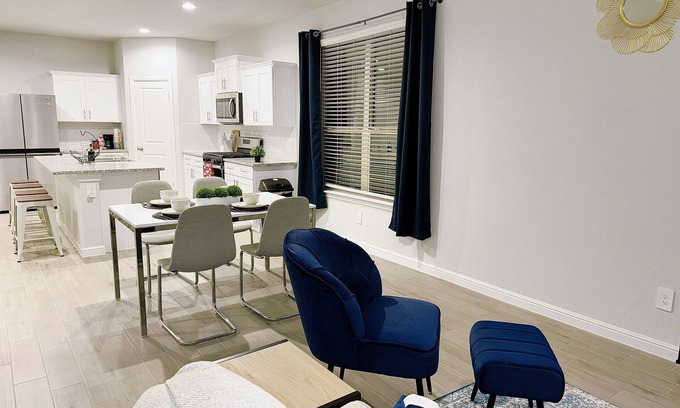 Welcome to our brand-new, modern smart home in the serene town of Crowley, bordering Fort Worth. With 4 bedrooms, 2 baths, and accommodations for 8 guests, our fully furnished haven is designed for utmost comfort. Your furry friends and little ones are welcome to explore the fenced-in yard, creating a secure and playful environment. Inside, discover luxury with memory foam mattresses, smart TVs, and inviting sofas. The well-equipped kitchen beckons culinary adventures. Located in a tranquil neighborhood, our home offers a peaceful escape, while still providing easy access to the vibrant offerings of Fort Worth. Your perfect blend of relaxation and convenience awaits!