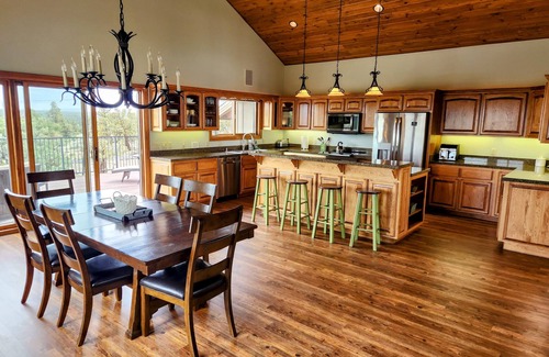 Hawk Owl Family Nest is fully equipped to be your home away from home. The gourmet kitchen has stainless steel appliances, granite countertops, plenty of cookware and service ware. Enjoy your meals together around the large dining room table, or take it to the back deck for an epic barbecue.
