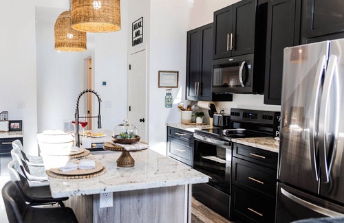 Welcome to Winding Woods! Relax with the whole family at this peaceful place to stay. Secluded, yet close to everything! Our stylish home away from home has 2 bedrooms, 1 and 1/2 bathrooms, and a 2 car garage.... bring your custom car or motorcycle! Beautifully appointed inside and out including an entertainment deck with fire table!