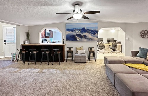 * Large open living area - seating for 20, oversized sectional couch, with twin sleeping area for 5, fireplace and 82" TV