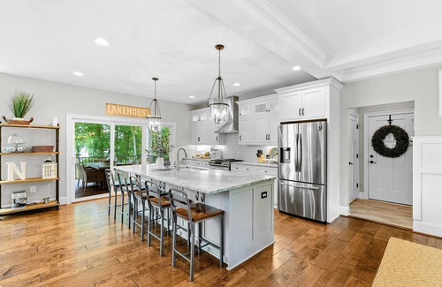 Nestled in a quiet, no-wake cove, this home offers a safe and fun waterfront for kids and families. Whether you're lounging on the deck, enjoying lake activities, or unwinding by the fire pit, Cucumber Cove is your perfect lakefront escape.