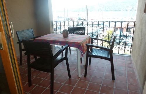 It is on the 1st floor of the house and consists of a terrace overlooking a garden and the marina, a living room (with a 140 cm sofa bed), a bedroom (bed double 140 cm), an open fully equipped kitchen (dishwasher, oven, hob, microwave ...), a bathroom (WC, washing machine) and separate toilet. Linen and sheets are provided.