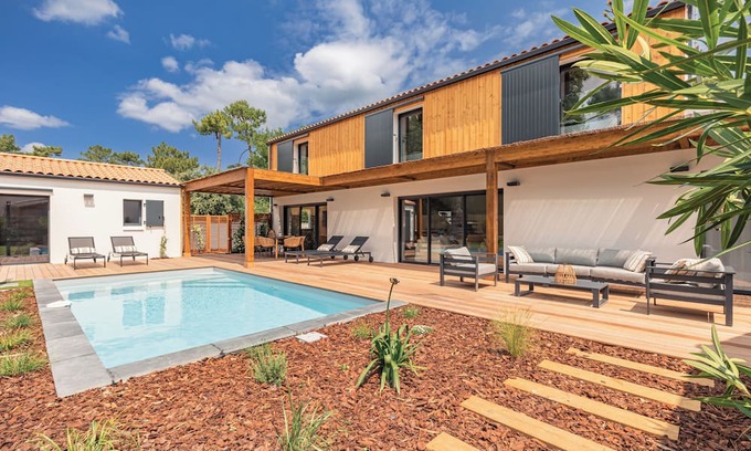 Best-rates for the Le Grand-Village-Plage house starts from $508 per night with includes Barbecue/Outdoor Cooking, Kitchen, Laundry, Air Conditioner, TV, Balcony/Terrace, Fireplace/Heating, Child Friendly, Internet, Parking, Pool, Security/Safety, Eco Friendly with all other amenities. Perfect for Weddings is committed to ensuring every guest experiences a comfortable and extraordinary stay, whether planning a romantic getaway, a honeymoon, a pet-friendly stay, or celebrating with the entire wedding party.