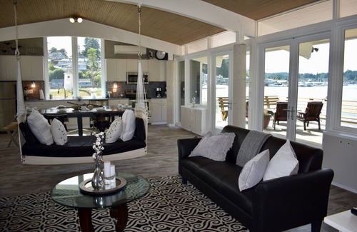 Surround yourself with beachfront luxury in two of the most amazing homes in Gig Harbor. These homes were once owned by a very affluent family and used as their summer retreat. Featured in Sunset Magazine for their design and location in 1962 and updated by us in 2019 these homes are beyond amazing. Located on the lighthouse point, these two homes have everything you can imagine to vacation with your friends and family. Low bank waterfront on three sides means you are literally surrounded by water and sand beaches. Relax by the fire pit or sit and sip wine from the beach or one of the 3 decks while watching, seals, otters and the occasional whale play in the water. Watch the sun come up while gazing out over the water at Mt Rainer from your back deck and watch it set over the yachts in the harbor from your front deck. Wander over to the Gig Harbor Lighthouse, kayak to Tides Tavern or be picked up on your private dock by the Gondola for a romantic ride through the harbor. Fall asleep at night to the sound of the waves lapping on the beach and awake to water views while still tucked snuggly in your comfortable bed. Private deep water moorage means you can even bring your boat along.