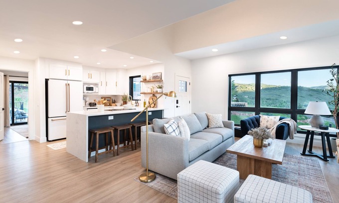 Taken down to the studs and completely reimagined! Located with easy access to stores, transit center, trails, skiing and everything Park City offers. Ensuite bathrooms, fully stocked kitchen with GE Cafe appliances and dedicated covered parking for 2 cars. Enjoy natural light and views in every direction. High end mattresses and furniture to help you rest comfortably. Enjoy outside seating with a fire pit and grill. Unit comes with games, books, NETFLIX.