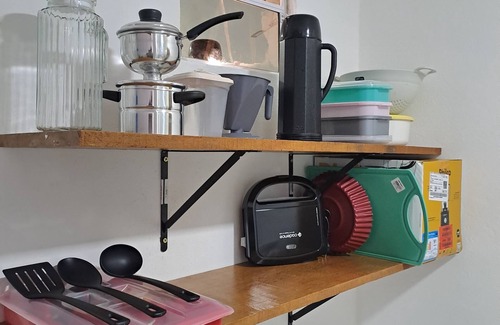 This 2-bedroom, 1-bathroom rental features a living room and air conditioning. Enjoy the free WiFi and TV. Bathroom amenities include towels and toilet paper. The kitchenette is equipped with an oven, a stovetop, and a refrigerator, as well as an electric kettle, cookware, and a blender. Other amenities include bed sheets and a dining table.