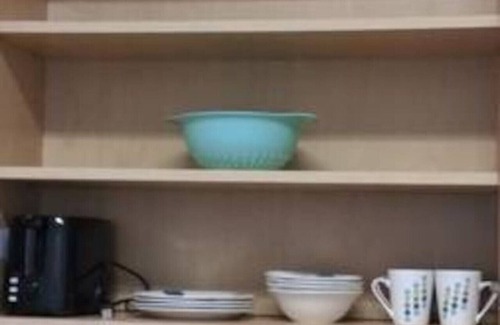 the Kitchen is fully loaded with pots, pans, dishes ,glasses it also has a keurig coffee maker , microwave , toaster an electric range stove .hair dryer ,iron and iron table everything is brand new including bed room furniture mattresses ecc.
