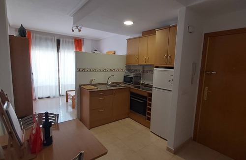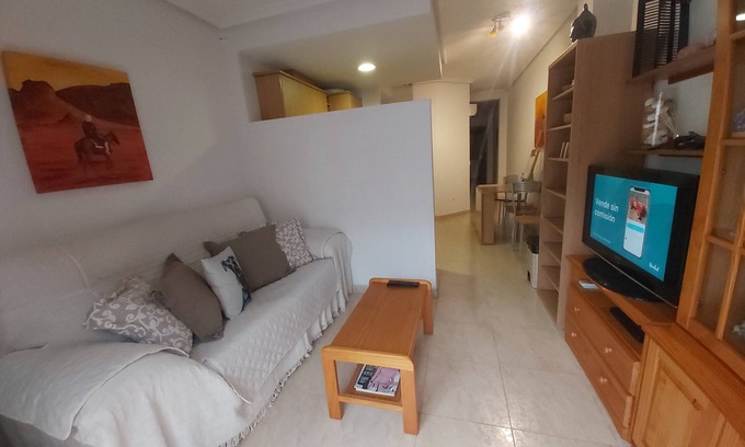 Very central, with air conditioning and washing machine, three streets, 180 m (2 min. Walk) from "Playa del Cura" and the Juan Aparicio promenade. (Very central, air conditioning and washing machine, three streets from the El Cura beach and 2 minutes walk from the sea and the Juan Aparicio promenade).