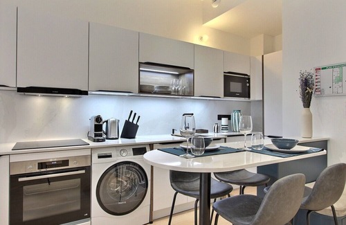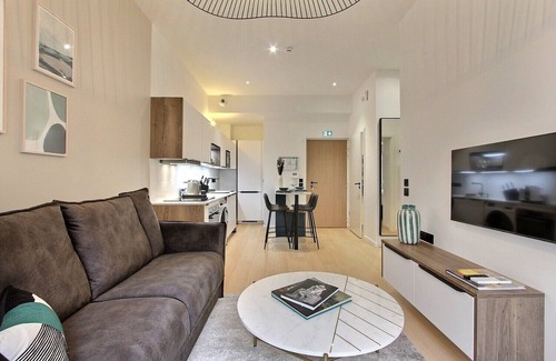 This one-bedroom apartment features a carefully thought-out layout, including a bedroom with a queen size bed "Hôtel & Lodge" , a shower room with toilet, and a bright living room opening onto a private 40m² garden. The modern interior features a fully-equipped open-plan kitchen with oven, fridge-freezer, washer-dryer, microwave, coffee machine and toaster.