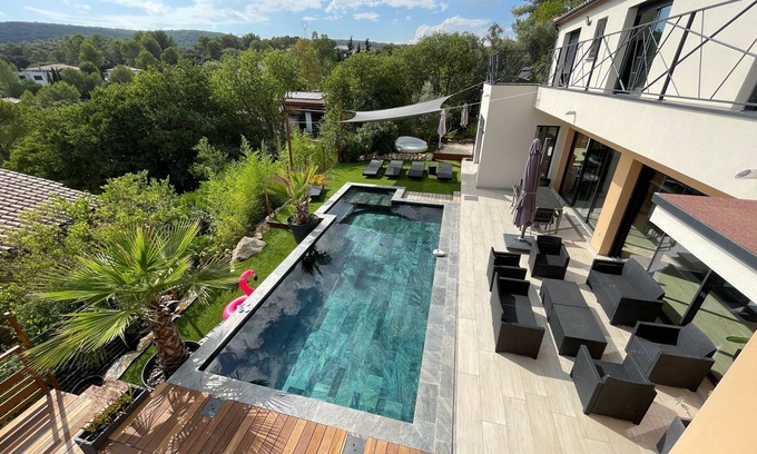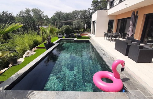 New architect-designed villa, 180m2, swimming pool, 12 minutes from Montpellier has 5 Bedrooms , 1 Bathroom, and max occupancy of 8 people. The minimum rental for this property is 1 nights, but this can change depending on the season you plan on staying. Previous guests have given good rated it, and VRBO labeled it a top-rated Villa because of the excellent services rendered by the owner or manager of this Villa, and has consistently provided great experiences for their guests. Most families or guests that use it recommend it to their friends and some of them are repeat guests. Villa has a friendly neighborhood, and the Saint-Gely-du-Fesc has interesting places to visit. If you want to learn more about the Villa in Saint-Gely-du-Fesc, such as places to visit and things to do nearby, you can check below to learn more.