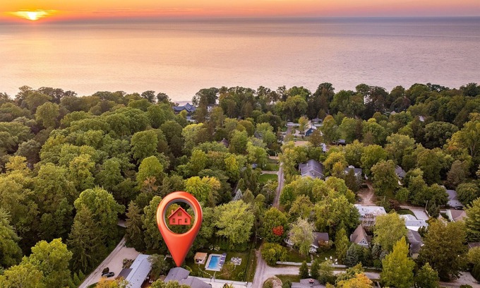 Welcome to Lakeside Escape, a luxurious lake house just a 3 min walk from a stunning west-facing beach, perfect for enjoying breathtaking sunsets over Lake Michigan. This family-friendly retreat offers a giant yard for outdoor activities including an in-ground heated pool, fire pit, gazebo, and a relaxing hot tub to unwind under the stars. Whether building sandcastles, taking a refreshing dip in the pool, roasting marshmallows, or soaking in the serene sunsets, Lakeside Escape promises an unforgettable vacation for all ages. Your perfect getaway awaits!