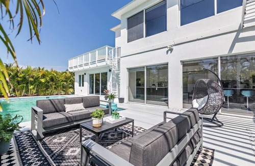 A truly unique and custom designed oasis on the intra-coastal with private pool & lots of outdoor & indoor areas to rejuvenate! Bring your friends, family co-working, you name it, we've got room! This tropical oasis has 5 bedrooms & 4 bathrooms. Fully stocked and professional managed. 10 mins to Palm Beach nightlife & dining. 5 min walk to the community inter-coastal beach.