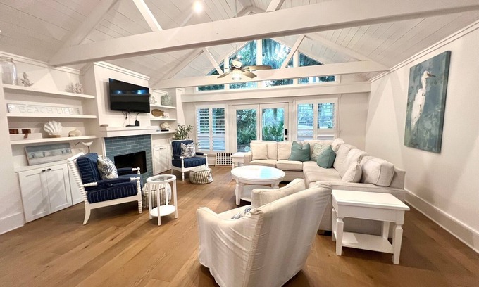 This beautifully remodeled property is a perfect blend of modern elegance and coastal charm, offering an inviting atmosphere flooded with natural light and adorned with designer furnishings. With three spacious bedrooms and three well-appointed bathrooms, The Blue Heron is an ideal retreat for families or groups of friends or even two families. Each room is thoughtfully designed to provide a restful haven after a day of exploring the nearby attractions.