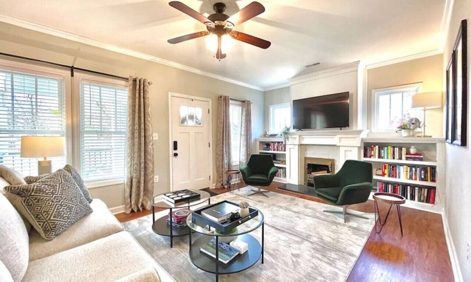Though this home, dating back to the 1930s, was originally constructed nearly a century ago, it has been meticulously renovated to offer a blend of classic and modern comforts. The inviting living room boasts a generous 55” smart television and provides access to a comprehensive entertainment package, including YouTube TV with local, sports, and movie channels, as well as Netflix and Hulu.