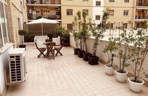 The 85 sqm apartment, 2 rooms with 2 double beds, a kitchen, living room, a bathroom is recently renovated and the furniture is new. The accommodation has a very nice terrace, furnished with sofas, table and umbrella where you can have lunch and dinner. In the accommodation you will find everything you need for cooking [pots, plates, cutlery, tablecloths], cleaning [detergents, mop, tea towels, bucket] and for personal hygiene [shampoo, tablecloths for face shower and bidet]. There is a washing machine and a hair dryer. Guests can enjoy the whole house and the 50 sqm terrace. Upon arrival you will find the Hosts, Carolina or Arturo waiting for you to hand over the keys and view the apartment. The apartment is located 5 minutes from the railway station [150m] and 2km from the motorway exit [A / 2 CASSINO]. It is located 300 meters from the center of Cassino. In front of the apartment there is the "HISTORIAL" historical museum of the Second World War. There is also a free parking area where you can park your car day and night. It is possible to move with your own car or with local public transport. Nearby you can visit the Abbey of Montecassino [7 km], the Historiale museum, the Theater and the Roman Amphitheater and the Varronian Baths. Under the building where the apartment is located there is a supermarket, a take and away with pizza, skewered chicken, potatoes, vegetables, pasta. We wish you a pleasant stay.