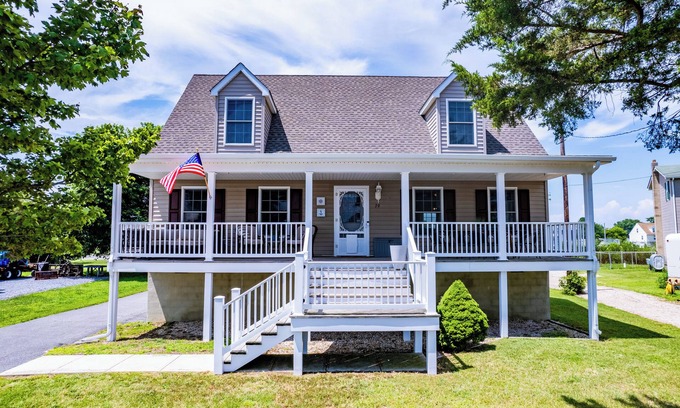 Welcome to your Bowers Beach retreat! Our beautiful property is a stone's throw from the beach and just 10 min from DE Turf complex. Ideal for families, couples, friends, and teams, our home has all the comforts you need. Enjoy bay views from the front porch (outdoor dining and lounging) and walk across the street to our local bars and restaurants (ask us for recomendations!). Or, if you prefer a cozy night in, our oversized couch is the perfect spot for movie or game nights with the family. Book your stay now and experience the best of Delaware living!