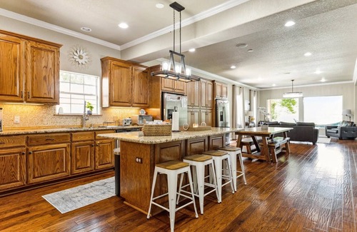 Experience the ultimate wedding stay at New Braunfels Lakefront Escape, a luxurious 4,000 sq ft home with direct access to serene Lake Dunlap. This stunning lakeside retreat offers an exceptional backdrop for your special day, ensuring you and your guests enjoy both adventure and relaxation.