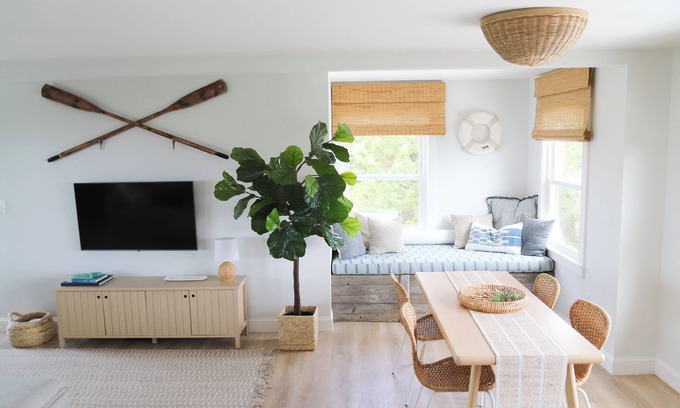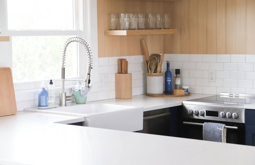 Experience relaxing coastal living at this beautiful coastal cottage vacation rental in Delaware’s hidden gem community of Broadkill Beach. This fully renovated two bedroom and two bath home is a brand new vacation listing, and has just become available for the summer 2024 season and beyond. The house is made for vacation getaways: beautiful, fresh, highly organized and clean, and designed with numerous custom elements, as well as East Coast local art and curated vintage finds.