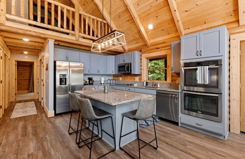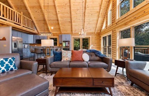 New listing! Welcome to Loggin' Off, a log cabin built in 2024 in the heart of Wintergreen. This 6 bedroom home sleeps 15 and features an open floor plan perfect for groups. Inside, you'll love the grand living room, fully stocked kitchen with high end finishes, loft, and downstairs game room. Outside, soak in the hot tub, chat around the gas firepit, or dine al fresco on the covered porch. Plus, pet friendly! Managed by Chris at New School Hosting.