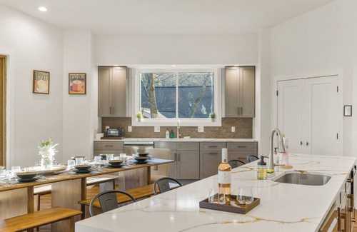 - Dining area with seating for 14 at the table, plus another 4 at the kitchen bar