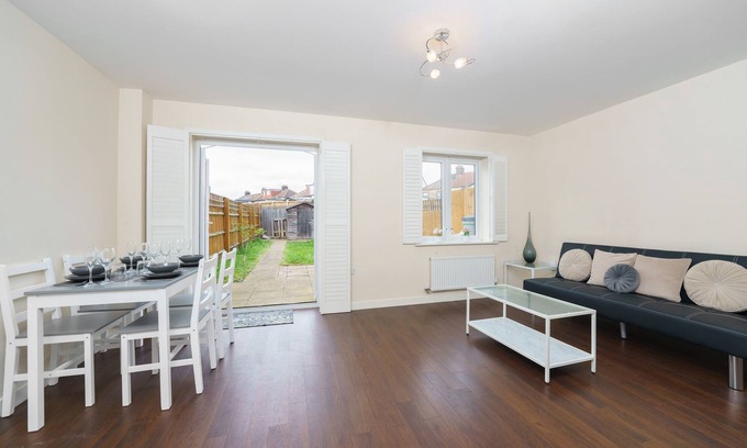 New Built Immaculate Condition House Garden & Private Parking is located in Havering. New Built Immaculate Condition House Garden & Private Parking provides accommodation, featuring Parking, Balcony/Terrace, Bedding/Linens, among other amenities. This House features Parking, Balcony/Terrace, Bedding/Linens, to make your stay a comfortable one.