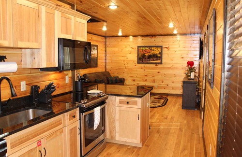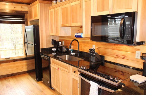 - Modern Amenities: The cabin is fully equipped with modern appliances, including a full-size kitchen, Keurig coffee maker, and a cozy living room with an electric fireplace, ensuring a comfortable stay for you and your guests.