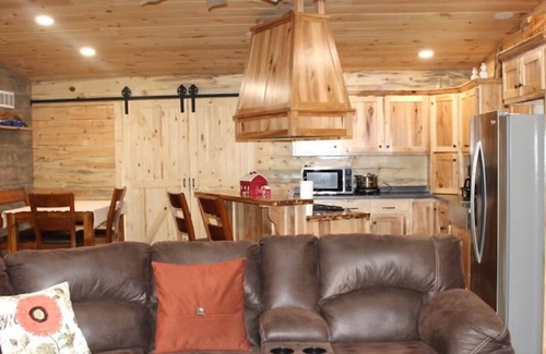 This beautiful new cabin is located just outside the small town of Boss MO. It has an open living, kitchen, dining area, two bedrooms and 3/4s bath. It also has a washer and dryer. A fire pit for a quiet night of stargazing.