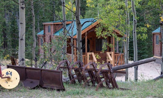 The Navajo Cabin, located just a short walk from the Southfork of the Colorado River, features a large deck with a gas grill and a private fire pit for a more intimate experience during your stay! Inside, the cabin offers cozy accommodations for six to eight people, featuring a queen-sized bed in one room, a set of bunk beds, a sleeping loft with two twin mattresses, and an open living room with a full-sized futon. Complete with a full bathroom and a well-equipped kitchen, it has everything you need for a comfortable stay.