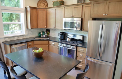 Couples Getaway!!! Brand new luxurious carriage house located in the heart of the highly sought after Garden District in downtown CDA. A short walk to the Resort, beach, Tubbs Hill, and all the wonderful shops and eateries. Enjoy your morning coffee or cocktail hour on your private deck equipped with soft seating and gas grill. No detail was missed with high end finishes throughout, including soapstone kitchen countertops, Carrera marble bathroom, stainless appliances (gas), and front loading washer/dryer. Other amenities include king size bed, Central Heat/AC, gas fireplace, wireless internet, Smart TV w/ Direct TV satellite service and dvd in living room, kitchen fully equipped. 4 night minimum stay, also can be rented longer term. We look forward to hearing from you and helping to make your stay in CDA memorable.
