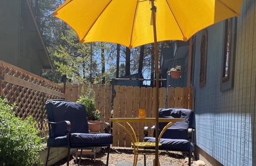 Unwind in our enchanting 1-bedroom Flagstaff mountain chalet, where tranquil seclusion awaits you. This cozy, private chalet is a perfect sanctuary for two, nestled amidst the cool ponderosa pines of the Coconino National Forest. This charming property is perfect for guests seeking a quiet retreat. Whether you're looking for a peaceful escape, or an adventure in the great outdoors, this is your haven. Our chalet features a comfortable king size bed and clean well-appointed bathroom, complete with shower and complimentary toiletries. Fluffy towels and a hairdryer are provided for your convenience. This newly built rental offers the convenience of a microwave, mini fridge, coffee maker and kettle at your disposal. You are invited to relax in the cozy living area and large bedroom or enjoy a cup of coffee/tea in the private garden, where you can listen to the gentle rustling of trees. The spectacular evening stargazing is a must! The surrounding area offers a wealth of outdoor activities. Hiking trails, mountain biking, and fishing spots are within easy reach, and in the winter, skiing, snowboarding and snowshoeing opportunities are abundant. The home is located in Kachina Village with hiking trails and water meadows within walking distance which are perfect for birdwatching. It is located 5 miles from the Pepsi amphitheater and Ft. Tuthill County Park, 8 miles from historic downtown Flagstaff where you can explore charming shops and lots of dining choices. Our modern retreat is 5 miles from west Flagstaff and 23 miles from Arizona Snowbowl Ski Resort and 22 miles from Slide Rock in Sedona. Discover the magic of the mountains in this idyllic quiet haven. Experience the best of both worlds with the peace of nature and modern comforts. Book your stay today, and let the mountains welcome you to a world of relaxation and adventure.