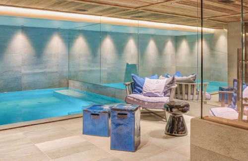 It offers 5 en suite bedrooms, a private gym, an indoor pool, a spa area, and a movie theatre. The chalet also benefits from an exceptional mountain view.