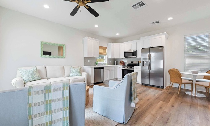 Welcome to Champion Cottage—your private 2-bedroom retreat in Parkside, Youngsville’s newest boutique cottage court. Located just steps from Foster Park and the Youngsville Sports Complex, this stylish stay features 2 Helix queen beds, a fully equipped kitchen, a sleeper couch, and all the comforts of home—perfect for families, teams, or weekend escapes.