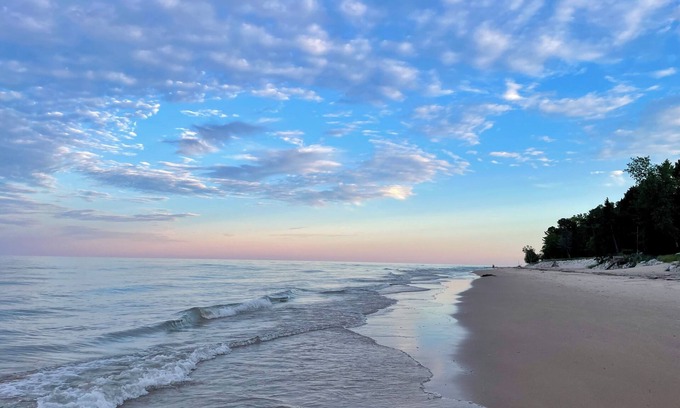 Your much-needed retreat begins at this large 3-bedroom house 300-feet from Lake Michigan. This wonderful property features 3 queen beds, a twin bed loft, and a pullout queen sofa sleeper (sleeps 9 in total) - perfect for a family or group getaway. With amenities like WiFi, AC, radiant heat, and on-site laundry, guests can relax and unwind in this quiet forest home. The 2 bathrooms in the home enable your option of a quick post-beach rinse in the shower or a relaxing soak in the tub. A large living room provides extra space for lounging, catching up on your streaming TV, or playing board games with the family. The large dining room table is perfect for hosting family meals or competitive card games. The quiet yard on this low traffic street enables lots of great playtime, hunting for frogs, or just waiting for the many deer visitors that regularly pass through. And don't forget the ping pong table in the basement awaiting it's daily challengers to see who takes home bragging rights. 300-feet in one direction is the sandy beach of Lake Michigan where rock skipping is a must. 300-feet in the opposite direction of the lake is a locals favorite supper club where you can enjoy an old fashioned and a fish fry. Newly offered in Spring 2025 as a vacation rental following a recent renovation, this is a great place to call homebase while you're away. We are sure you will enjoy your stay. (NOTE: Large new gas grill after 5/17/25.)