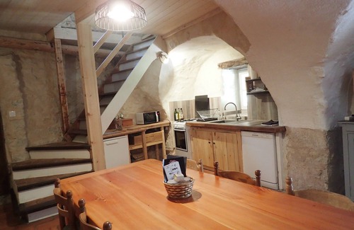 A staircase leads down to the ground floor, that is to say the large vaulted kitchen / dining / living room of 40m² which leads directly onto the terrace. The kitchen is well equipped. There are all the necessary equipment and household appliances.