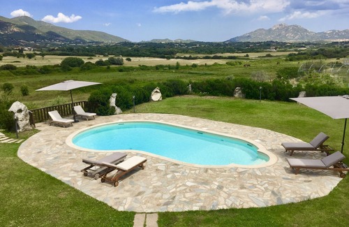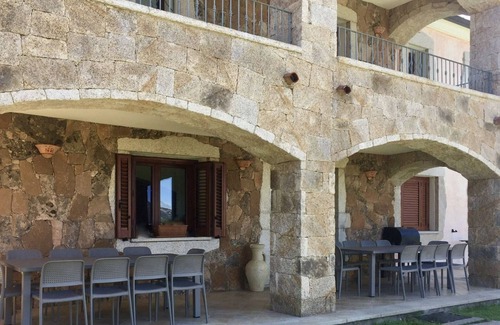 This charming villa of 360 m2, furnished with refinement, can accommodate 22 people. It consists of a pleasant living room, a living room, a kitchen and eight rooms in traditional Sardinian style with private shower rooms. Four bedrooms have a covered terrace with a sitting area. Located in the heart of nature, surrounded by wild olive trees, the villa has a pleasant private outdoor pool.