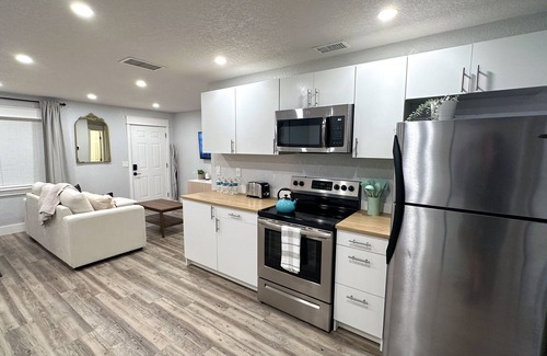 Beautiful fully remodeled Modern Villa, 3 minutes from I-4 (750 sqft, Duplex - Unit A. Other side of the duplex is vacant for full privacy). The property is perfectly located in between Tampa and Orlando. Fully stocked to feel like your second home. 2 bedroom 1 full bathroom. Fully fenced with private backyard. Near restaurants, the famous Bonnet Springs Park and grocery stores. 10 minutes from Downtown Lakeland, 10 minutes from Lakeland Regional hospital, 30 minutes from Tampa, 50 minutes from Orlando. The perfect location to enjoy everything central Florida has to offer.