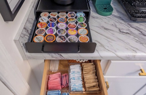 - Keurig k-cup machine (complimentary k-cups and sugars provided) or make a pot of your own favorite coffee.