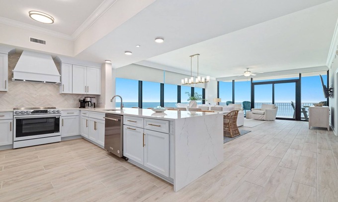 Our condo is perfectly situated on the 17th floor East corner with amazing views of the Gulf!! We also have a keyless entry door lock so you do not have to keep up with any keys during your stay! You can enjoy a spectacular view of the Gulf from the balcony or through the floor-to-ceiling windows in the Living room and Master bedroom, and 3rd and 4th bedrooms. With over 2,000 sq ft the unit is very spacious, newly furnished and new to the rental market!!