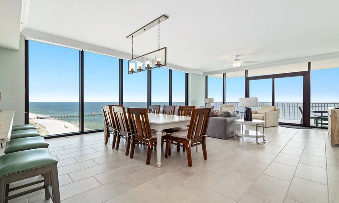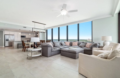 Our condo is perfectly situated on the 24th floor East corner with unrestricted panoramic views! We also have a keyless entry door lock so you do not have to keep up with any keys during your stay! You can enjoy a spectacular view of the Gulf from the balcony or through the floor-to-ceiling windows in the Living room and Master bedroom, and 3rd and 4th bedrooms. With over 2,000 sq ft the unit is very spacious, newly furnished and new to the rental market!!